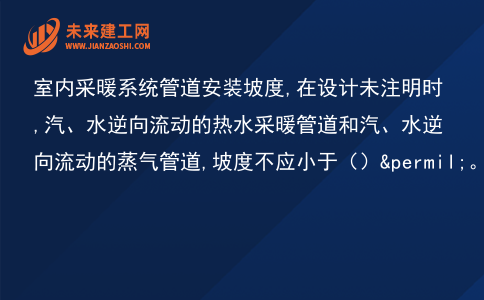 室内采暖系统管道安装坡度,在设计未注明时,汽、水逆向流动的热水采暖管道和汽、水逆向流动的蒸气管道,坡度不应小于()‰。