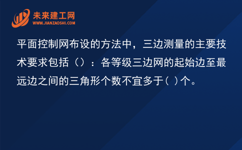 平面控制网布设的方法中,三边测量的主要技术要求包括():各等级三边网的起始边至最远边之间的三角形个数不宜多于( )个。