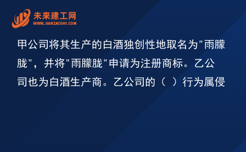 甲公司将其生产的白酒独创性地取名为"雨朦胧",并将"雨朦胧"申请为注册商标。乙公司也为白酒生产商。乙公司的( )行为属侵犯甲公司商标权的行为。