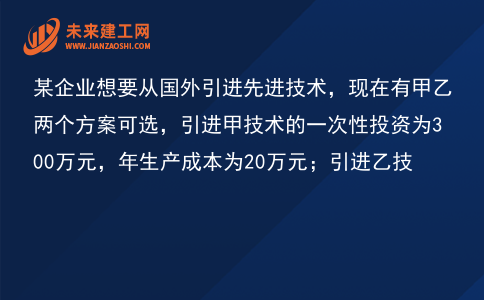 某企业想要从国外引进先进技术,现在有甲乙两个方案可选,引进甲技术的一次性投资为300万元,年生产成本为20万元;引进乙技术的一次性投资为400万元,年生产成本为10万元。设基准投资收益率为6%。则()。