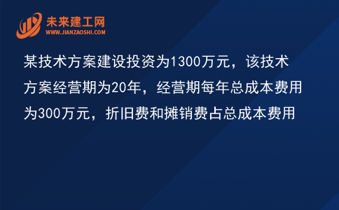 某技术方案建设投资为1300万元,该技术方案经营期为20年,经营期每年总成本费用为300万元,折旧费和摊销费占总成本费用的20%,若直接将总成本费用列入技术方案投资现金流量表的现金流出,则会多计现金流出量合计为()。